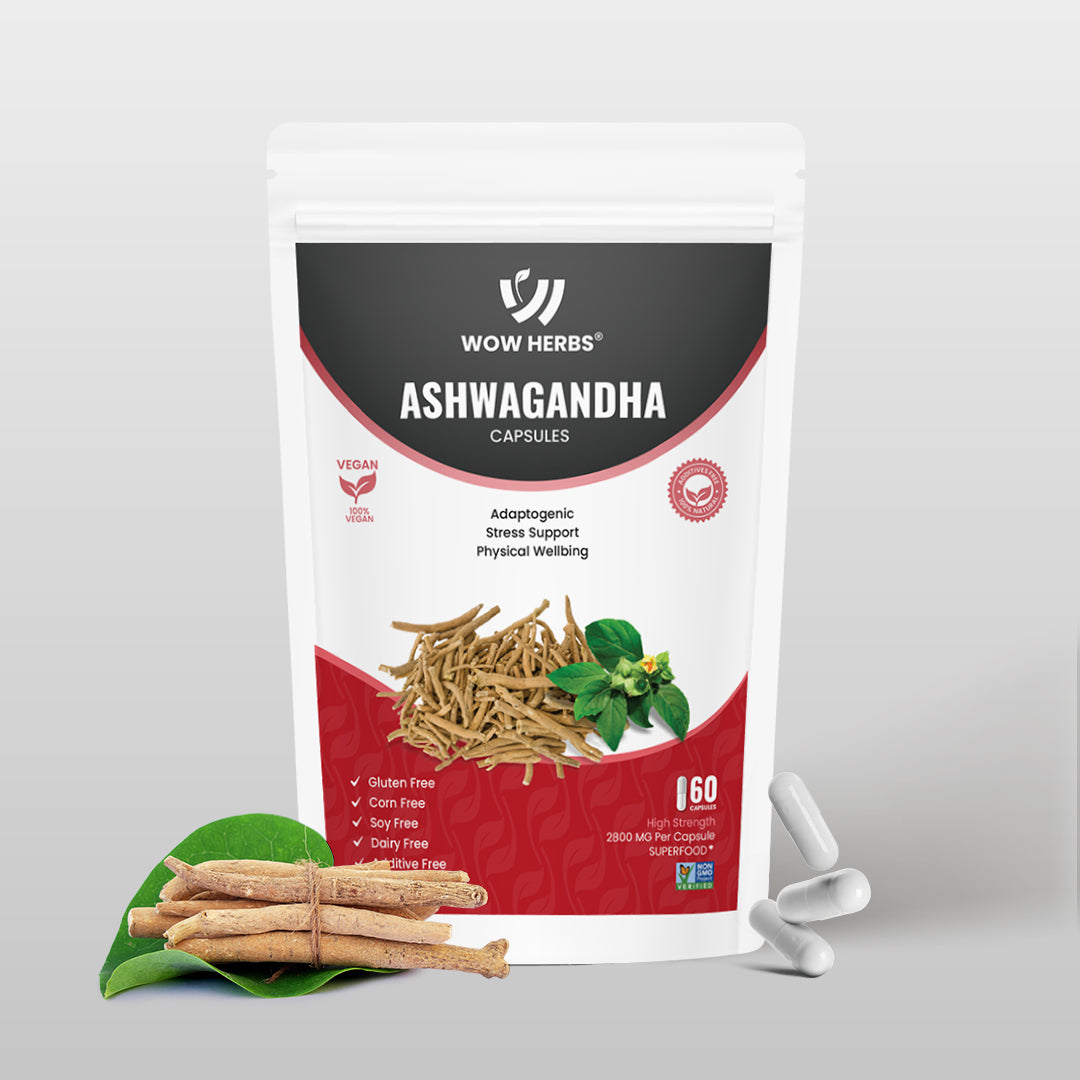 Rediscover calm, focus, and strength with WOW HERBS Ashwagandha Capsules. Each capsule combines high-strength Ashwagandha extract (10:1) and pure Ashwagandha root powder, offering comprehensive adaptogenic support to manage stress, enhance energy levels, and promote mental clarity.