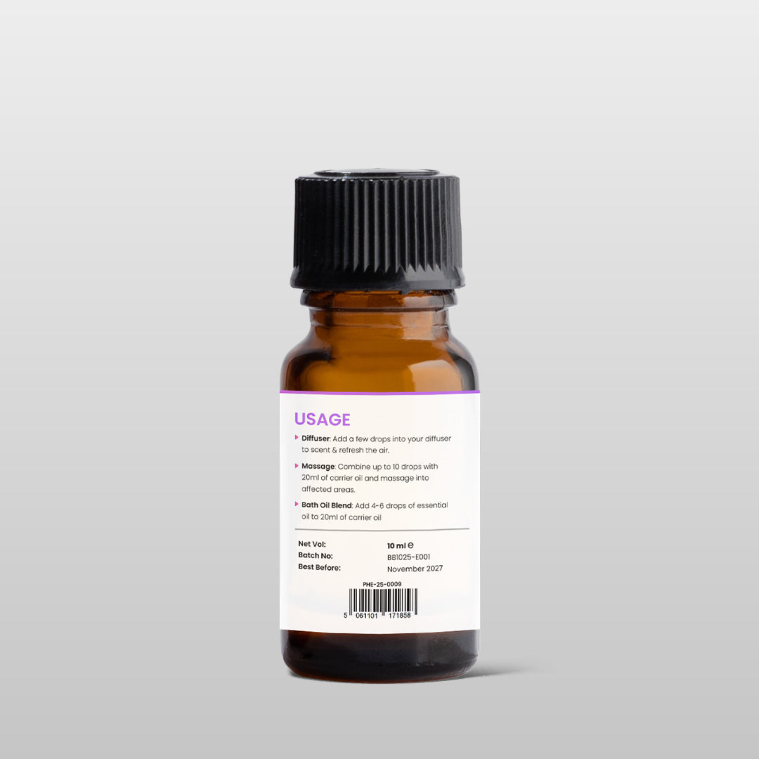 Massage: Combine up to 10 drops with 20ml of carrier oil and massage into the affected areas.