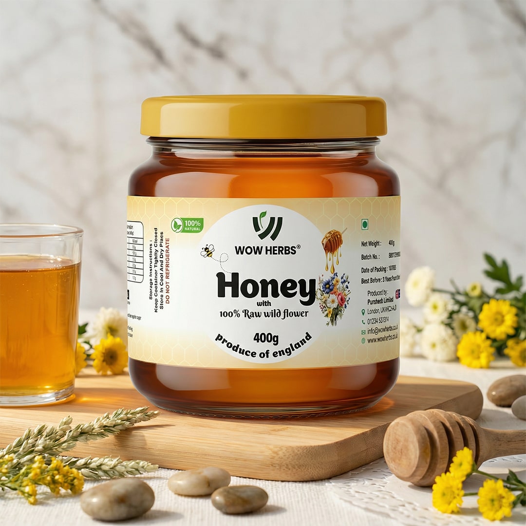 WOW HERBS Raw Wildflower Honey is 100% pure, natural, and unprocessed, retaining its full nutritional profile. Rich in antioxidants, enzymes, and micronutrients, this raw honey supports immunity, improves sleep quality, and promotes overall wellbeing. Its soothing properties help relax the mind and body, while naturally enhancing energy and brain health